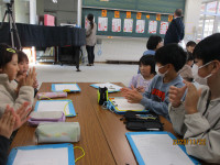 はじめに、「上林の好きなところはどこ?」と聞かれた子供たち。「空気がきれい!」、「緑がいっぱい」、「地域の人とのかかわりがたくさんあるところ」と、思い思いに答えました。